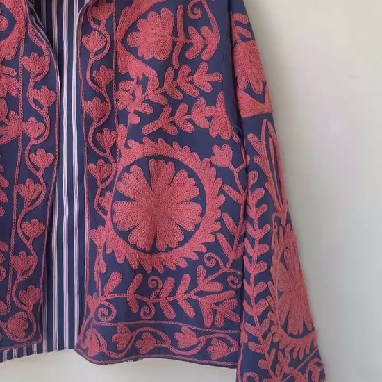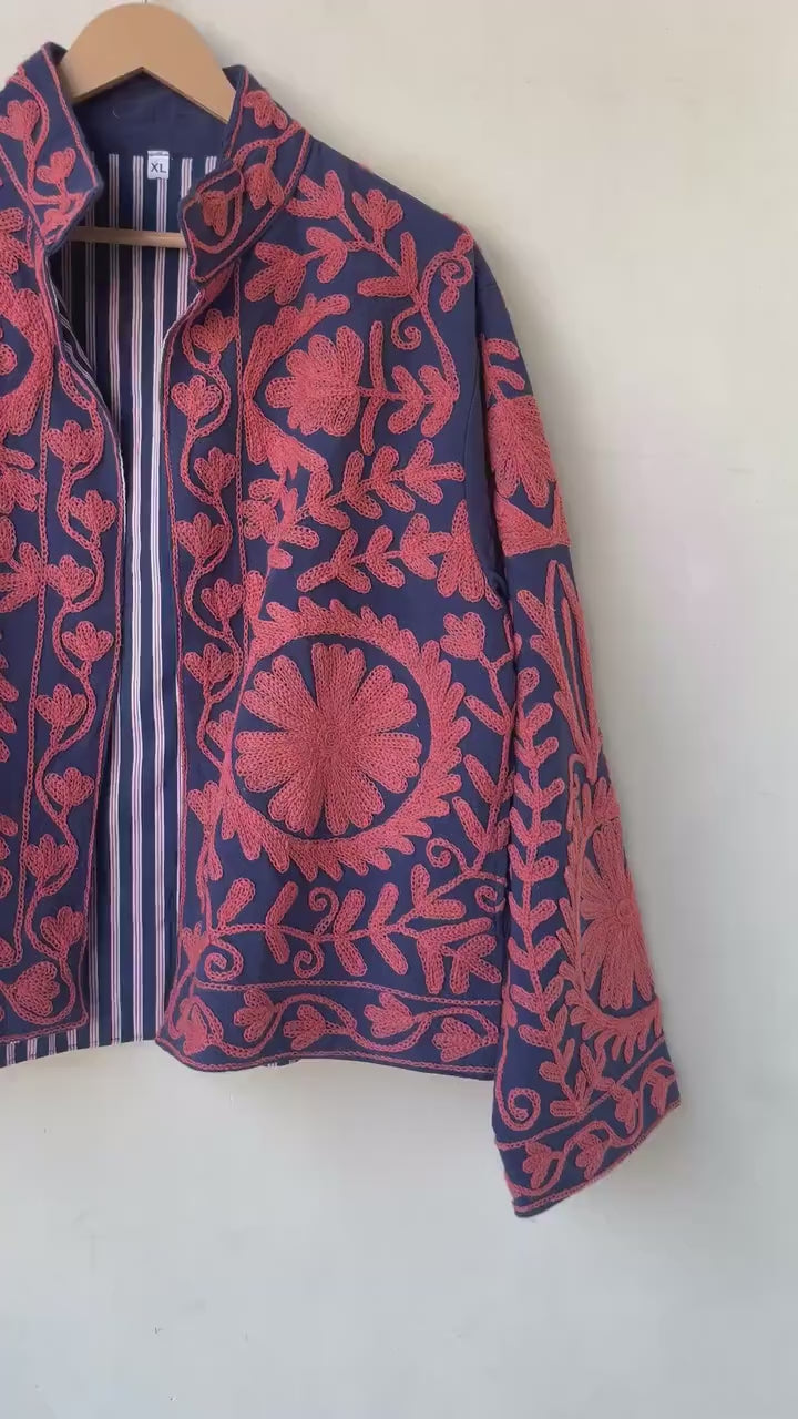 Indian Suzani Embroidery Jacket, Cotton Suzani Coat, Winter Wear Jacket Coat, Suzani Short Jacket, Hand Embroidered Jacket For Women