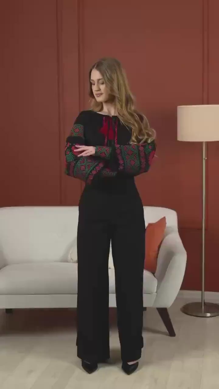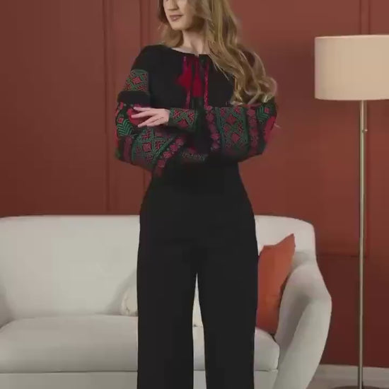 Ukrainian blouse with roosters embroidery, slavic blouse, black ukraine shirt, embroidery tops, Hand Embroidere, vyshyvanka for gift